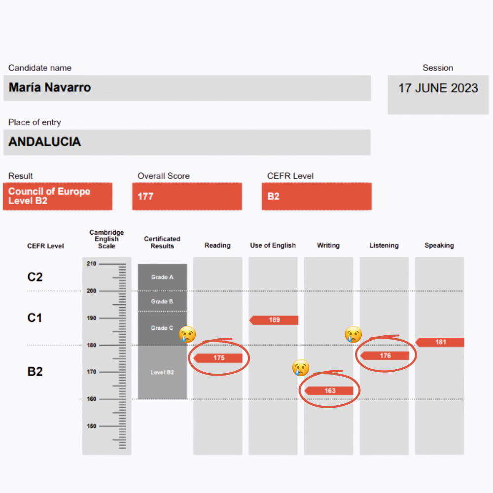 “Que tú expliques los fallos y los vayas resolviendo con nosotros marca la diferencia a la hora de hacer writings y practicar speaking. También, se nota en el Use of English lo de ir dando truquillos y explicaciones. Esa implicación no la vi en ningún momento en la otra academia”.